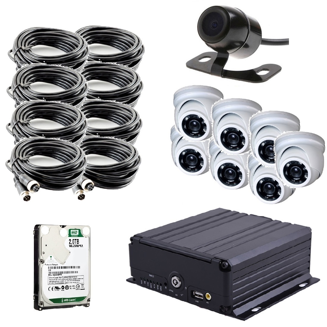 Комплект видеонаблюдения на транспорт с 1 SD картой на 8 камер