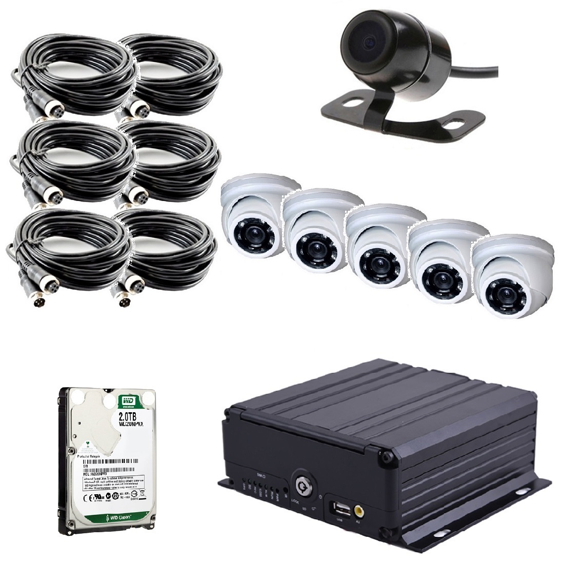 Комплект видеонаблюдения на транспорт с 1 SD картой на 6 камер