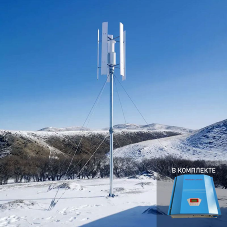 GRIF НВ3-2КВ – это вертикальный ветрогенератор мощностью 2 кВт, предназначенный для автономного энергоснабжения. Устройство отличается высокой эффективностью работы при низких скоростях ветра (5-9 м/с), что делает его подходящим для установки в регионах с переменчивым ветровым режимом.